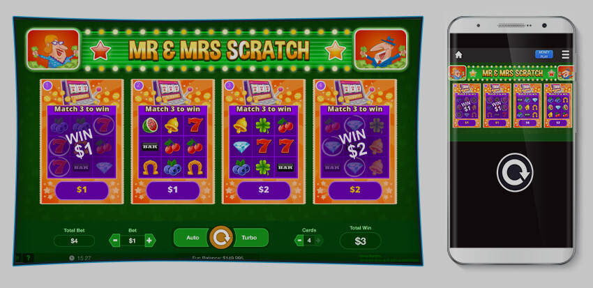 Have you met Mr & Mrs Scratch? This animated duo brings life to any bash! They love to dance… especially when players win big cash playing their 4-card, match-3-to-win scratch card game!